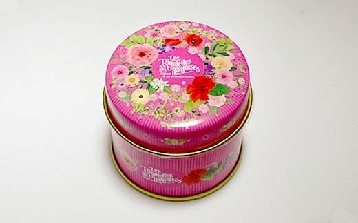 ピンクの可愛らしい缶には、ハイビスカス、オレンジ花、すみれ、バラ、ひなげしといったお花のフレーバーキャンディが。