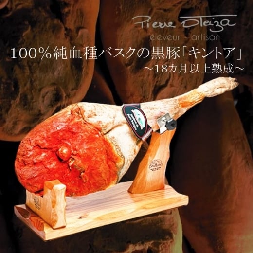 ピエール オテイザの純血バスク豚”キントア”生ハムは、バスク地域で育てられた高品質な豚肉を使用しています。独自の手法で塩漬けし、長期間じっくりと熟成させた贅沢な一品です。